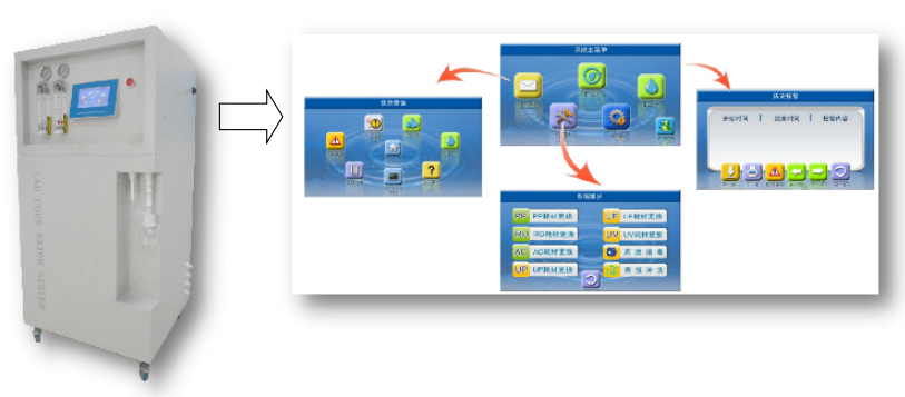 Ø 完善的RO純水和去離子水造水、系統(tǒng)取水、系統(tǒng)循環(huán)和消毒等管理功能。